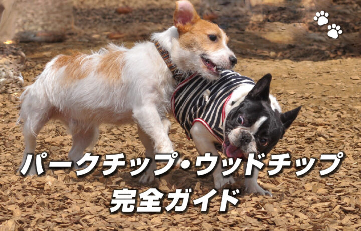 ドッグランにパークチップ(ウッドチップ・バークチップ)を使うメリットと施工方法を解説。消臭・殺菌効果、DIY手順、費用目安、他の床材との比較まで。施工実例付き。