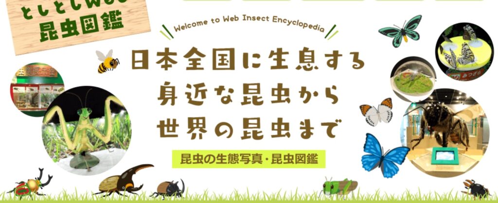 としとしWeb昆虫図鑑は、全国の昆虫館や展示施設などを実際に訪れて収集した情報をもとに、400種類以上の昆虫を掲載しているインターネット図鑑です。